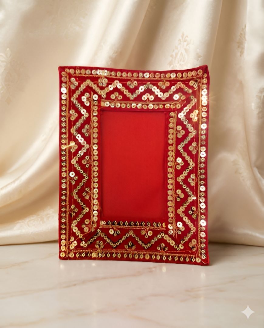 श्रीनाथजी फ्रेम के लिए चिट्राजी वस्त्र – जरदोशी पैटर्न एवं मखमली बॉर्डर के साथ