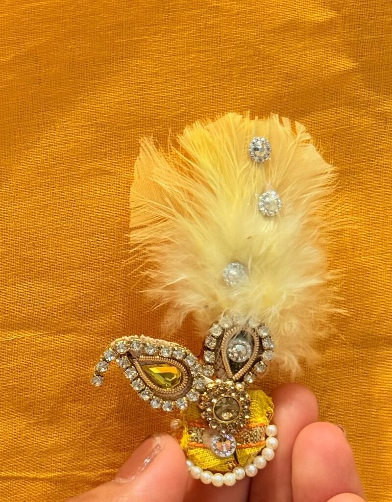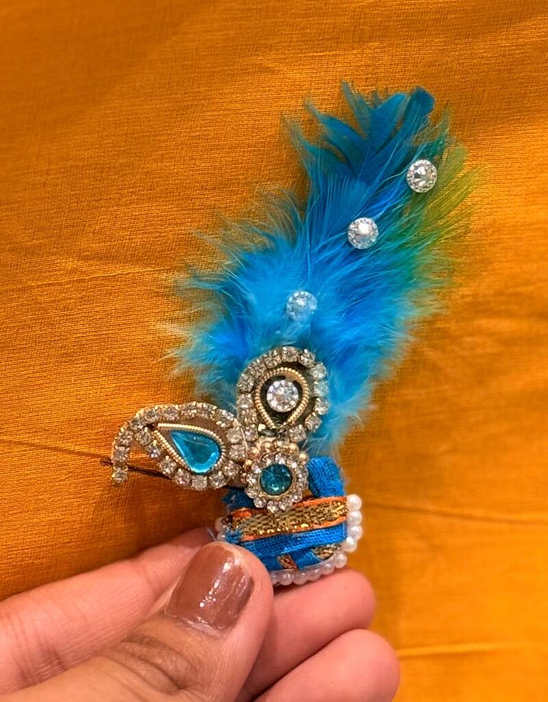 A lightweight feathered crown with kalangi – ideal for summer seva, offering royal elegance to Shrinathji & Lallanji.